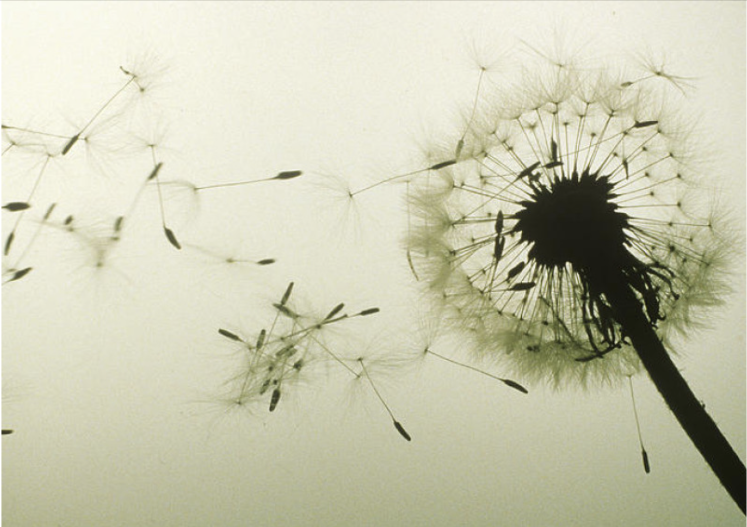 Letting go is like blowing a dandelion into the wind, a contrary wind, that whisks tiny tailed wisps up your nostrils under your eyelids into your ears.